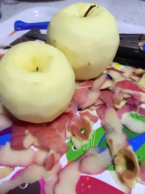 将去完皮后的苹果削成小块薄片。