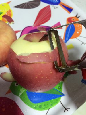 用削刀去掉苹果皮。