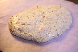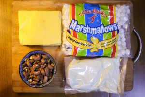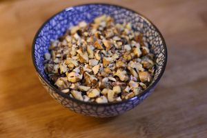我准备的坚果是核桃仁儿和腰果,放在案板上压碎备用,不用太碎,能保持坚果的香气。可以做点蔓越莓或者是玫瑰的,都好吃