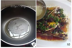 将鱼从锅里拿起,另锅烧明油,将烧热的明油淋在鱼身上即可食用。