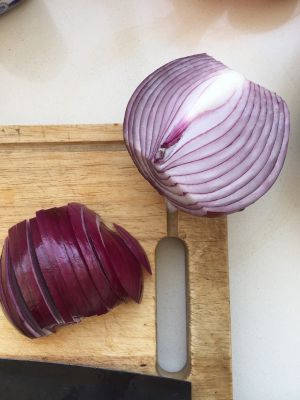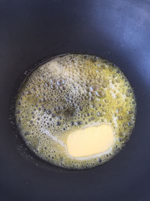 黄油融化,放入洋葱碎翻炒,出锅前放入盐拌匀。