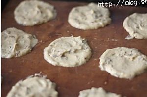 用汤匙将面糊舀入烤盘并压成直径约5cm的薄片。