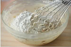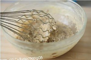 加入玫瑰糖拌匀,再加入少量香草精搅打均匀,分次少量加入蛋白混合均匀。