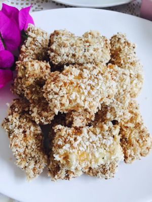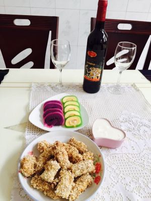 蘸上冰凉的酸奶,又凉又热,咬一口,外壳酥脆带着芝麻的香,里面滑嫩,因为有酸奶,所以感觉一点也不油腻。