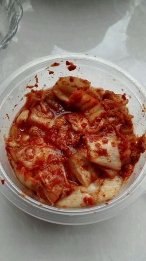 辣白菜,在超市里面专门卖韩国辣白菜买的