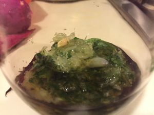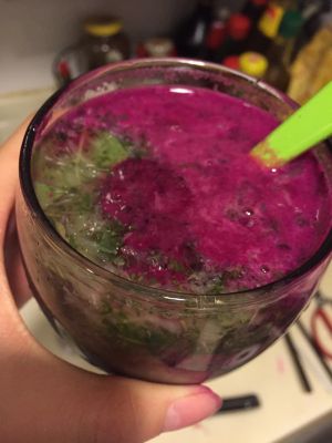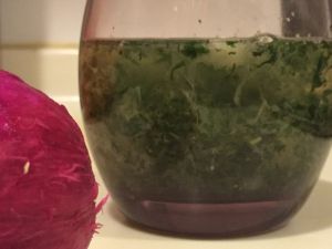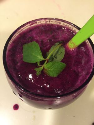 把柠檬肉和薄荷叶放入榨汁机,放水100ml,捣碎。