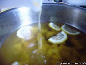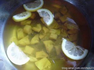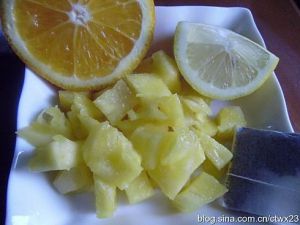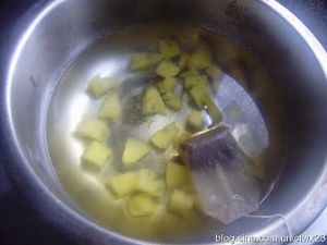 、菠萝冲洗干净切块,放入锅中,加入500毫升水煮开3分钟,加入茶包,提拉三分钟,使红茶充分释放,取出(喜欢浓一些红茶味的话,可以多浸泡一会儿)