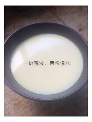 特别注意,出汁需要加温后再和蛋液混合,没有出汁就加温水,如果加凉水和热水都会导致残酷的失败,切记!