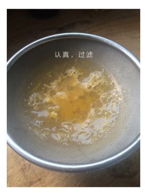 鸡蛋用力打撒,蛋液中加入,盐,生抽,味淋(没有可以不加),充分融合后,用过滤网过滤,这样做的目的是让蛋羹口感爽滑。