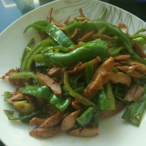 倒入青椒