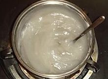 把搅匀的红薯浆倒入锅中,小火加热,过程中务必一直不停的搅拌