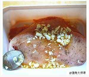 把拌好的酱涂到鸡胸肉的两面,放进保鲜盒,密封的放在冰箱冷藏室里!(注意是密封),至少腌制3-4小时