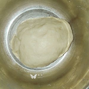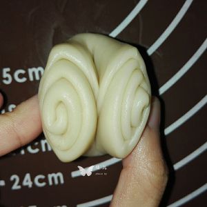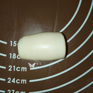 一边转一边将面团慢慢向上收口。捏紧并收口,面团收口朝下,整成圆球状。
