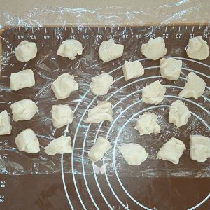 将水油皮平均分成12份,盖着保鲜膜备用。