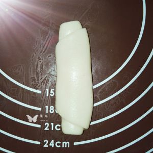 将第二次擀卷的成品,盖上保鲜膜,放置冰箱冷藏静置松弛20分钟。