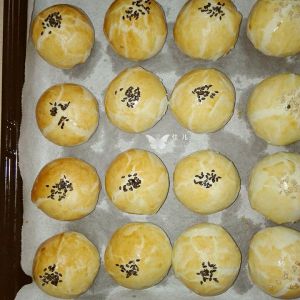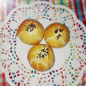 烤盘放入预热好的烤箱中层,180度烤30分钟左右,表面金黄就可以了。