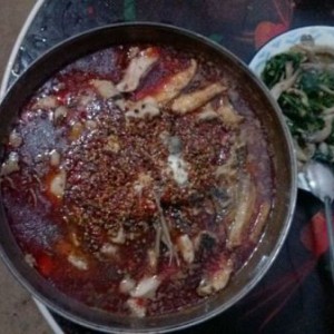 把焯好的菜放入汤盆,鱼肉带汤倒进来,将包装里的麻辣料撒在鱼片上,烧一汤勺油至冒烟,慢速浇在麻辣料上,再撒上香菜,完成了!!!