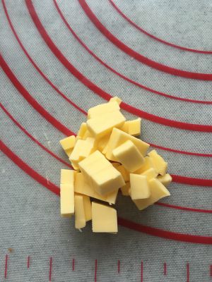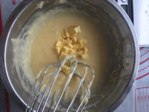 黄油切小粒儿 倒入奶黄糊中 趁热融化
