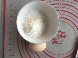 制作奶黄馅儿 把糖 吉利丁粉 玉米淀粉混合均匀 准备一个蛋