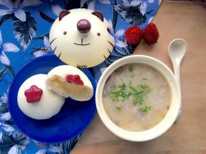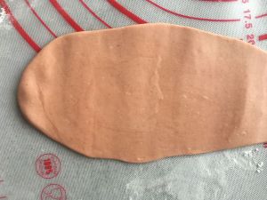 粘好以后 剩下的红曲面团可以包馅儿 一起蒸