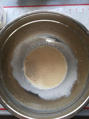 制作面团 将牛奶和酵母倒到面盆中 搅拌均匀