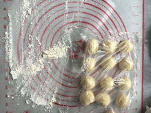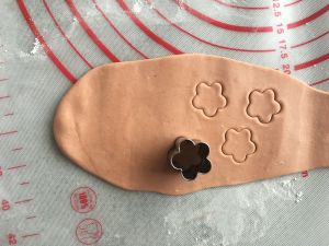 面团分好 称20克一个 可以做12个 我之前做了35克一个的 做了8个 剩下的面团留着做梅花用