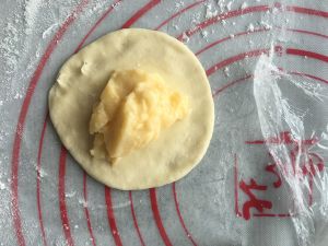 加入奶黄馅儿 用虎口收紧 整成圆形