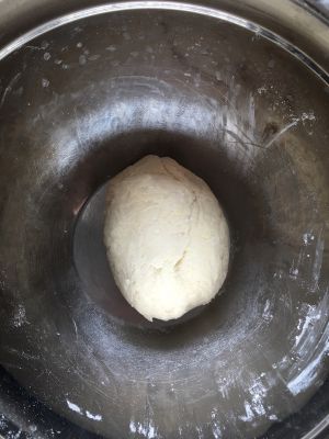 面团从面盆中拿出 在案板上揉和至面团光滑