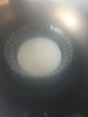 将牛奶倒入碗中 隔水加热 注意 不要用玻璃碗!!不要问我为什么……我的玻璃碗裂了