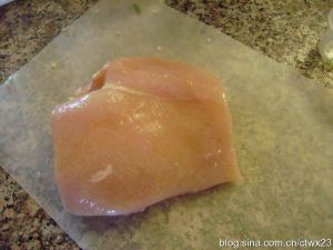 看清楚鸡肉的纹理的吗?应该蛮清楚的吧,就是肉上面那一条条的,只要顺着一条条的纹路切就好