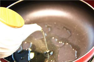 平底锅烧热,放入少许油。