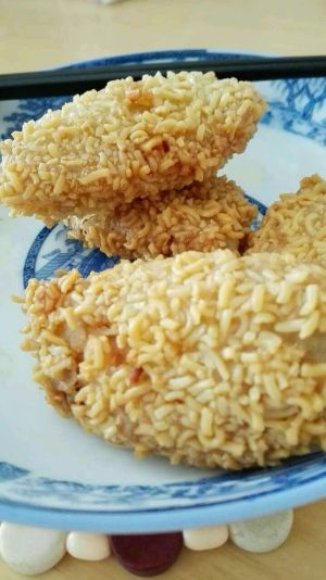 鸡翅洗干净,刮两刀,放盐,料酒,姜,香酥炸粉,腌制两小时。