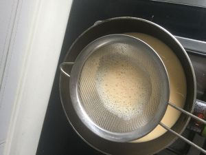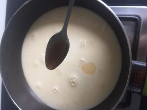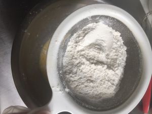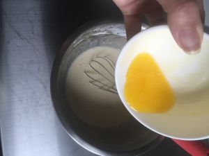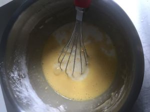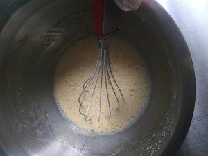 拌匀(加入淀粉的目的是为了降低面粉的筋度,使千层皮的口感更软)
