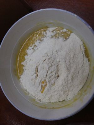 一点点加入牛奶,边加边搅面糊,调到面糊细腻,有一点缓慢滴落的状态