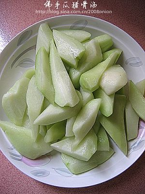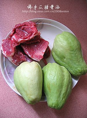 猪扇骨煲1小时后落炒过的佛手瓜煲40分钟左右至佛手瓜软即可