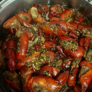 将做好的龙虾浸泡在料中一小时以上更入味。吃的时候再翻炒热下。