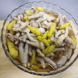 将鸡脚打理去除指甲,鸡脚掌中间黑色老皮去除