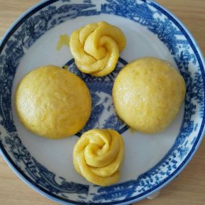 南瓜蒸熟,加糖,盐少许,压成泥。