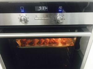 烤箱在烤之前要预热,然后200摄氏度,3D热风模式,20分钟,烤到10分钟再把鸡翅翻个身,再烤十分钟就可以了