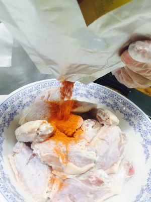 搅拌均匀,尽量多一点奥尔良烤翅粉