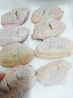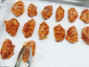 烤盘里面垫一层锡纸一层油纸,鸡翅先内部向上
