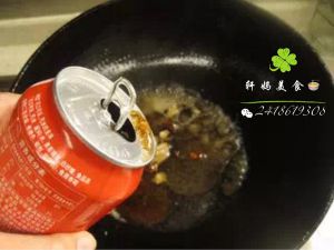 倒入半罐可乐(可乐量要没过鹌鹑蛋),再滴入1小勺生抽。