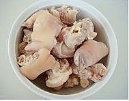 猪蹄冷水下锅,开水后汆一下,洗净备用。