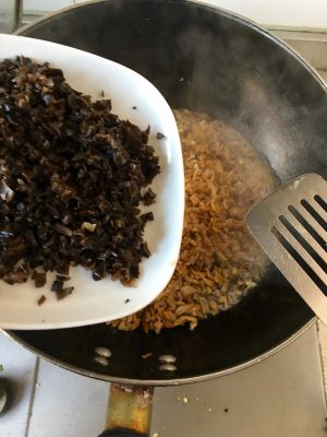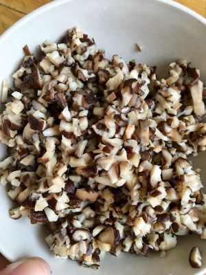 泡好的木耳切碎,与鸡蛋,黄花,粉丝,香菇是一比一的量(冷水泡)