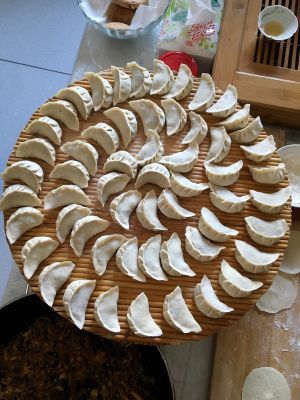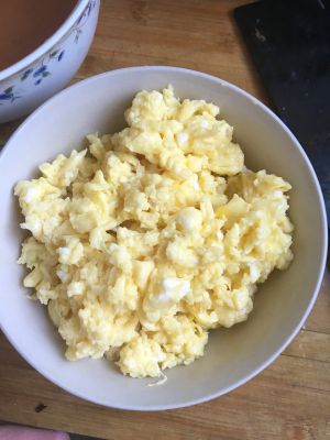 最后放鸡蛋拌匀,关火。放入适量盐晾凉就可以包饺子了