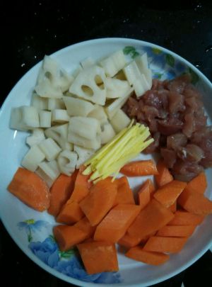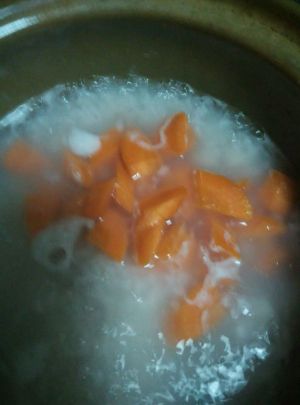 然后再把红萝卜和莲藕放下去煲,约40分钟