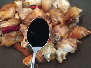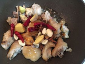 然后倒入猪脚上糖色,翻炒2分钟左右。