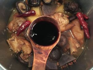 关火后给高压锅放气,打开盖子,加入一勺陈醋,小火在煮8-10分钟。让猪蹄肥而不腻的秘诀就是最后这勺醋了!