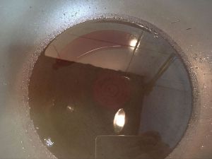 冰糖慢慢融化,变成焦糖色时候就可以了。注意冰糖别炒过了,冰糖炒过了,口感会微微发苦。