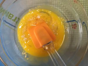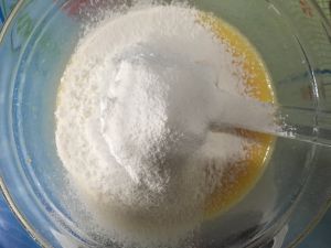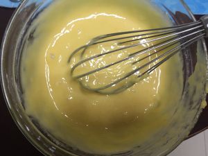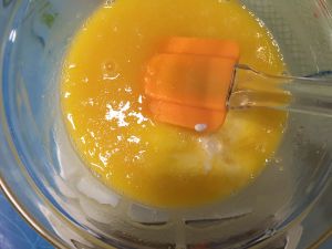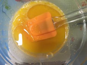 将三分之一蛋白倒入蛋黄糊中 十字法搅匀